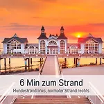 Dieses Apartment liegt in ca. 4 km Entfernung vom Jagdschloss Granitz. Das Stadtzentrum von Sellin ist zu Fuß in 5 Minuten zu erreichen. Das Hunde ohne Aufpreis - Fewo Hagemeister Sellin - 6 Min zum Strand - mit 2 Balkonen - gratis Sauna&Coworking Space im Haus ist ebenfalls in einer Entfernung von circa 10 Fahrminuten von der Seebrücke Göhren gelegen.